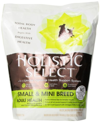 Holistic Select Small and Mini Breed Radiant Adult Health – Anchovy, Sardine and Chicken Meals Recipe was specifically developed for Small and Mini Breed adult dogs, with the equation for health being simple, start with enhanced premium proteins, wholesome grains and healthy fat sources to support their increased energy needs. Holistic Select then combines them with the unique Select Actives as well as small and easy to chew kibble size for small mouths and teeth. Size: 6-Pound bag.