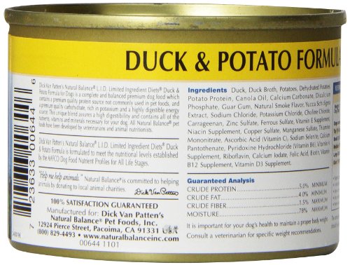Reformulated to complement Natural Balance Duck and Potatoe Dry Food. Made specifically for dogs prone to allergies. Some dogs may be highly sensitive to commonly used proteins, carbohydrates and food additives in their diet. Natural Balance “Potato and Duck” formula combines a single source of animal protein that most dogs have not been exposed to, and a single source of carbohydrate not commonly found in dog foods, along with effective natural ingredients to help rebuild the dog’s immune system. This food does not contain corn, soy, wheat, eggs, white rice, dairy, or sunflower oil.