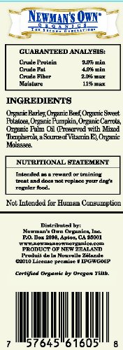 For the past 20 years, Newman’s Own Organics has been offering Great Tasting Products That Happen to Be Organic. You can feel good about feeding our New Zealand Ranch Style Dog Treats to your beloved dog as they are made without artificial flavors, colors or preservatives. Our New Zealand Ranch Style treats use organic beef, grains, fruits and vegetables. Our formulas are 95% organic and do not contain wheat or corn.