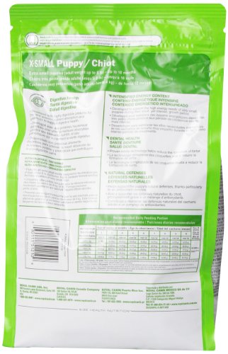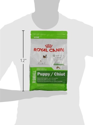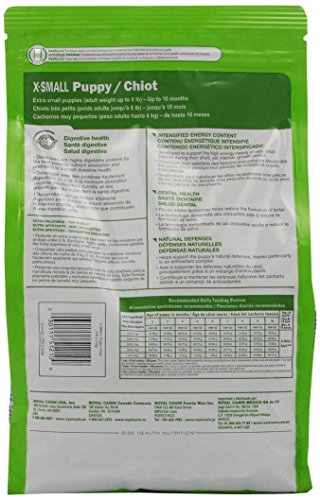 Royal Canin X-SMALL Puppy is developed with highly digestible proteins for the best possible nutrient absorption and prebiotics to support digestive health. Extra-small dogs have unique physiological distinctions, such as jaw size, bone strength and digestive systems. This formula features an intensified energy content to support the high energy needs of very small puppies during their short, yet intense, growth period. This formula also supports the puppy’s natural defenses with an antioxidant complex. Extra small kibble designed for their miniature jaw helps reduce the formation of tartar. This formula is highly palatable and satisfies the fussy appetites of extra-small dogs. Recommended for extra-small breed puppies (adult weight up to 8 pounds) from 2 to 10 months old. Size: 3 pounds.
