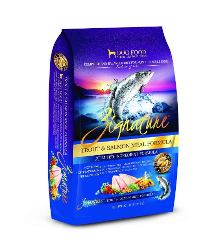 Zignature Trout & Salmon Meal Limited Ingredient Formula Dry Dog Food. Complete and Balanced Diet for Puppy to Adult Dogs.