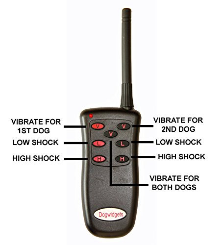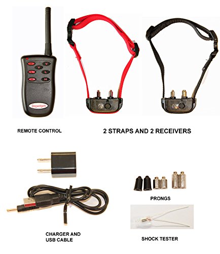 Latest model Dogwidgets DW-5 2 dog training collars. Collars has 2 levels of shocks and 1 level of vibration and has 600 feet range. Collar will work with small, medium and large dogs from 15 to 100 lbs. You can train your dog individually with a shock and vibration or correct your 2 dogs at the same time with a vibration. Very safe and humane.