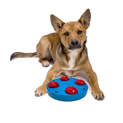 The Treat Wheel Mini encourages your dog’s natural hunting and foraging behaviors. The object of this game is to seek out hidden treats. To retrieve the treats, dogs must paw and nuzzle at the treat-hiding cups. After removing each cup, your pup will learn to rotate the spinning base to reveal four additional treat chambers. Once your dog has mastered the puzzle, use the adjustable difficulty knob to increase the challenge!.