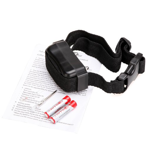 An internal microphone picks up the sound and the unit is automatically activated. The bark control collar starts with emitting an ultrasonic sound of 1 second as a warning at the first bark. At the second bark the collar emits an ultrasonic sound of 2 seconds. From the third bark the collar emits a 3 seconds ultrasonic sound and gives 2-3 seconds static shock. The dog should stop barking. If the dog barks within 1 minute after the first static shock, the collar sends out a 3 second ultrasonic sound and 2-3 second of static shock. If the dog stops barking, the collar resets itself to the lowest level and repeats the first 3 steps. The shock levels can be adjusted with the delivered screwdriver.