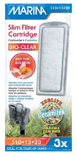 The Marina Slim Filter Zeolite Plus Ceramic Cartridge combines Zeolite and Ceramitek in one cartridge for a healthy aquarium. The Zeolite effectively adsorbs toxic ammonia and reduces stress on fish, while the Ceramitek, a highly porous ceramic biological filter medium optimizes biological filtration. The easy-to-use disposable cartridge should be replaced every two weeks. Never replace all filter cartridges at the same time in order to ensure constant presence of beneficial bacteria. The Marina Slim Filter Zeolite Plus Ceramic is best used in goldfish aquariums.