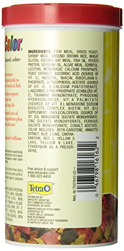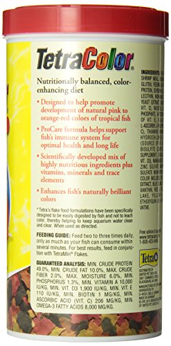 TetraColor Flakes promote beautiful color in all tropical fish and can be fed daily, alternating with Spirulina foods and treats