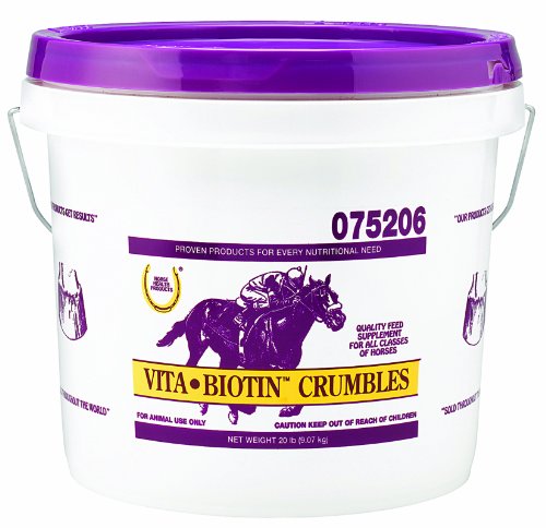 Dehydrated Alfalfa Meal, Ground Limestone, Wheat Middlings, Oat -Hulls, Vegetable Oil, Cane Molasses, Natural And Artificial Flavo-Rings, Propionic And Acetic Acids(Preservatives). Provides biotin to help maintain healthy hooves. “Biotin plays an important role in the metabolism of carbohydrates, fats and proteins.” “Vitamin supplement for all horses, including pregnant mares.”