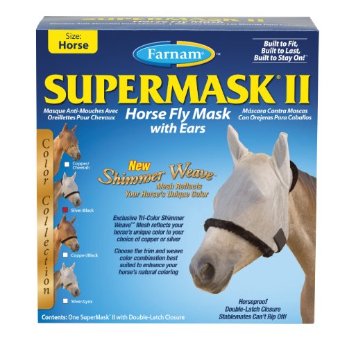 SuperMask II with Ears Shimmer Weave collection combines function with fashion like no other fly mask! The exclusive tri-color Shimmer Weave® mesh reflects your horse’s unique color, in your choice of copper or silver.