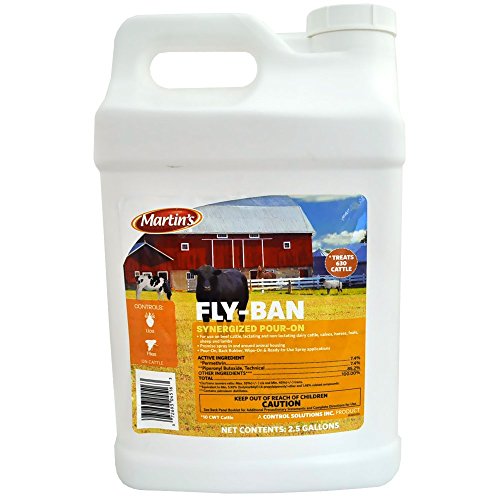 FlyBan Synergized PourOn an oilbased, readytouse topical insecticide that controls lice and flies on beef cattle, lactating and nonlactating dairy cattle and calves when applied as a pouron, mist spray or back rubber. Controls keds on sheep and lambs when applied as a pouron. Controls flies on horses when applied as a wipeon, pouron or readytouse spray. Can also be used as a premise spray in and around horse, beef, dairy, swine, sheep and poultry premises, animal hospital pens and kennels, and outdoor meatprocessing facilities. No dilution necessary (except for back rubber devices). Active ingredients are 7.4 permethrin and 7.4 piperonyl butoxide