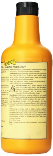A treatment for relief of temporary muscular soreness and stiffness caused by exposure, over-work or exertion. Helps reduce swelling. Acts as a bracer and tightener and stimulates circulation.