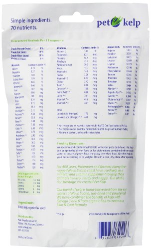 Cold-processed organic flax seed, high in Omega-3s and Omega-6s, is added to this trace mineral- rich proprietary blend of kelp and seaweeds. Pet Kelp Skin and Coat Formula provides relief for a dog or cat’s skin and coat problems by combining both the Omegas AND essential trace minerals needed for stronger, glossier coats and a healthier skin condition.