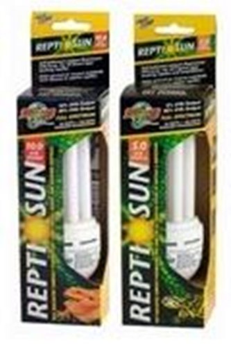 ReptiSun® 5.0 – Perfect for all tropical species of reptiles and amphibians. 5% UVB Output, 30% UVA Output, FULL SPECTRUM. The new ReptiSun® Compact Fluorescent lamps use a special UVB transmitting quartz glass for maximum UVB penetration. Cool burning compact fluorescent bulbs screw into standard threaded sockets, eliminating the need for a separate ballast. Lamp can be oriented either vertically or horizontally in your reptile hood or clamp lamp fixture. UVB emissions help prevent or reverse metabolic bone disease and UVA increases feeding, mating, and other natural behaviors.