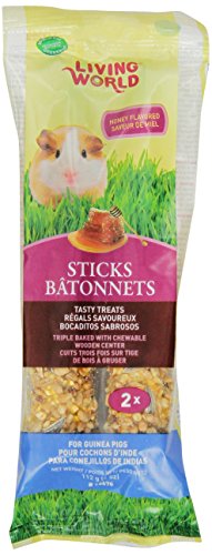 Living World Sticks for Guinea Pigs are healthy and delicious treats that provide many outstanding benefits, including excellent nutrition, an enticing incentive to exercise and a safe way to satisfy your pet’s instinctive need to nibble. The sticks contain high quality grains, seeds and honey, which are triple baked to ensure that your furry little friend gets a healthy, crunchy and irresistible treat every time. Highly palatable, the tasty sticks will entice your pet to chew away with enthusiasm, providing an excellent form of exercise and entertainment that helps relieve boredom, as well as an effective outlet for your small animal’s constant need to gnaw. Each stick has a natural wood center that is completely chewable and safe. The sticks also come with a flexible clip holder so that you can easily hang them on the cage wire for easy access.