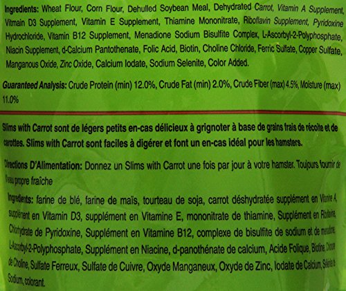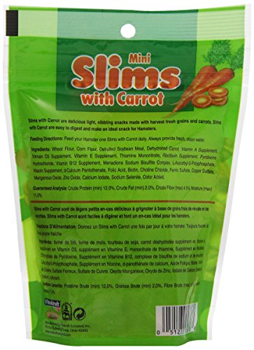 Slims with Carrot are delicious light, nibbling snacks made with harvest fresh grains and carrots. Slims with Carrot are easy to digest and make an ideal snack for Hamsters.